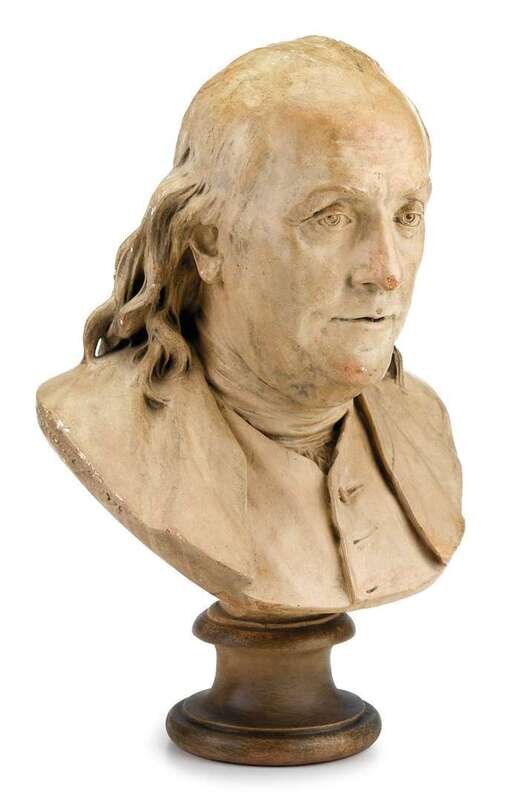 After Jean-Antoine Houdon (1741-1828) tinted plaster bust of benjamin franklin,