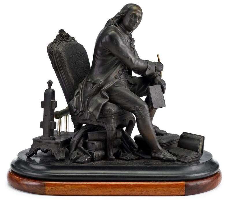 Patinated metal seated figure of Benjamin Franklin 19th century