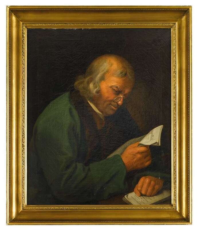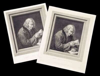 Signed and dated, "1780," framed. Together with two engravings after the portrait, "The Politician, engraved by T. Ryder, Published as the Act directs May 1st 1782 by T. Ryder & Sold by A. Torre & I. Thane No 28 Hay Market" and "The Politician (Dr. Benjamin Franklin) engraved by T. Ryder, the original plate Re: published July 1, 1824 by Z. Sweet 38 Chancery Lane."