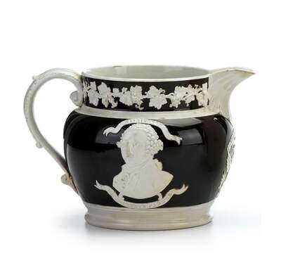 Brown Jasperware Commemorative pitcher circa 1830