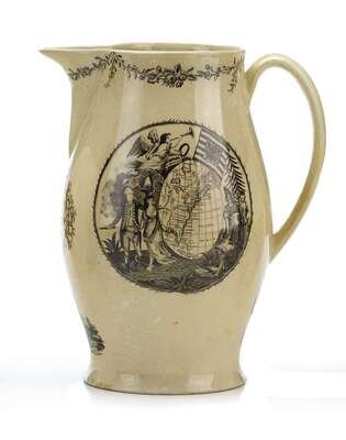 Black transfer-decorated creamware pitcher attributed to herculaneum pottery, early 19th century