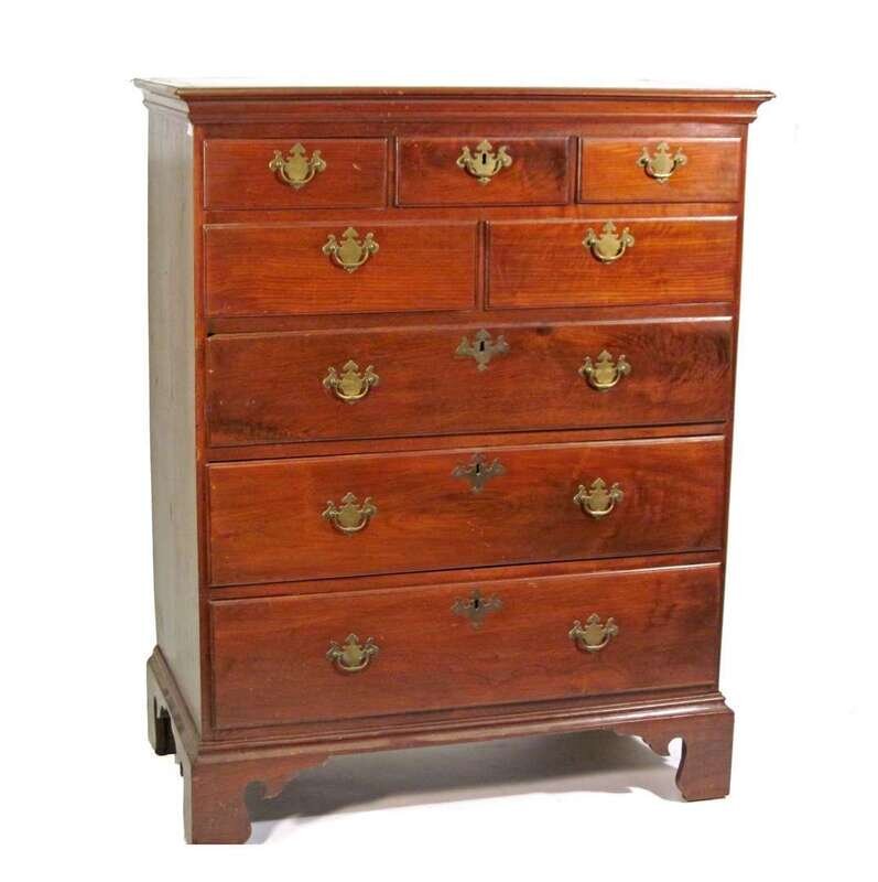 The rectangular top with molded edge above an arrangement of eight drawers, resting on bracket feet.
