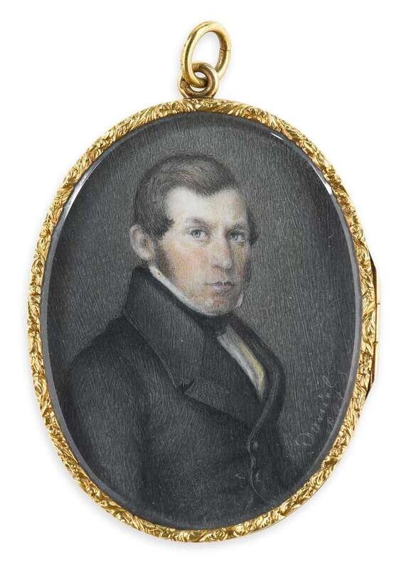 Signed and dated "Daniel 1842," in hinged gilt pendant and fitted leather case.