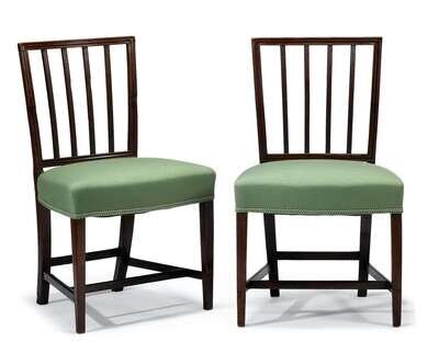 Pair of Federal square back mahogany side chairs portsmouth, new hampshire, circa 1800