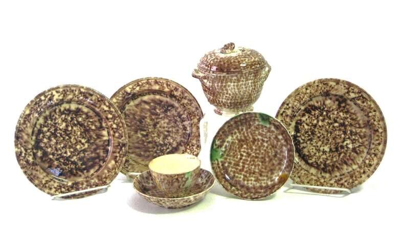 Group of tortoise-shell glazed creamware items england, late 18th century