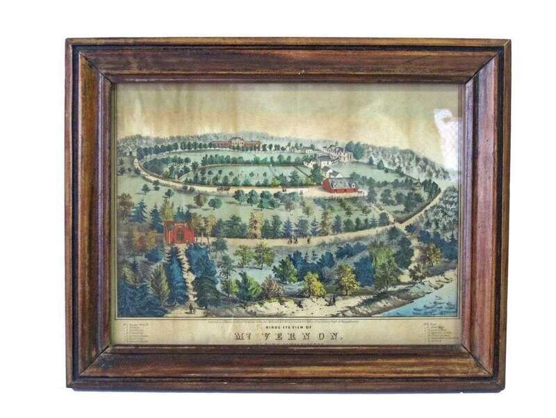 "Bird's Eye View of Mt. Vernon, The home of Washington" by g. & f bill, massachusetts, 1859