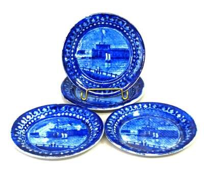Four Staffordshire historical blue transfer printed cup plates enoch wood, second quarter 19th century