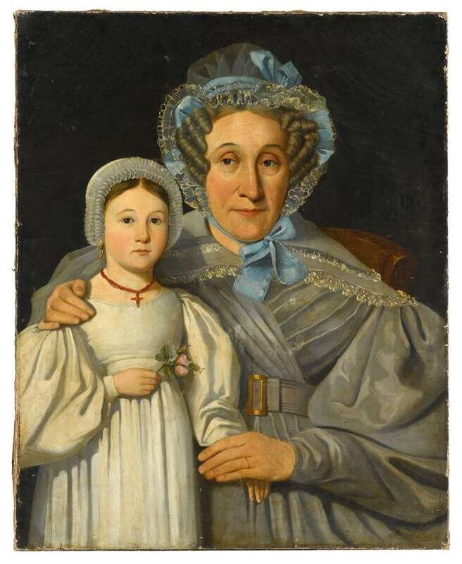 French School, 19th century portrait of a woman and child