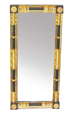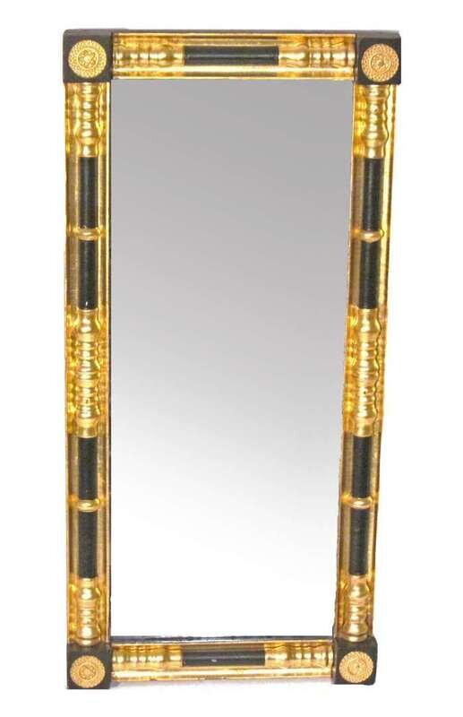 Having two mirror plates enclosed by ebonized and gilt turned split balusters with floral corner blocks, inscribed verso, "Mr. H. G. Doubleday."