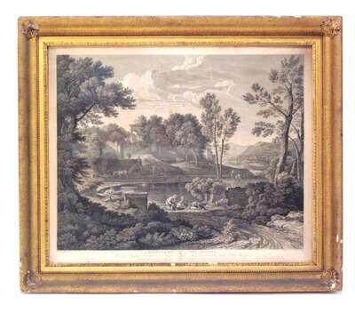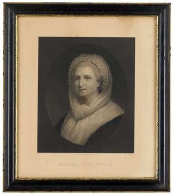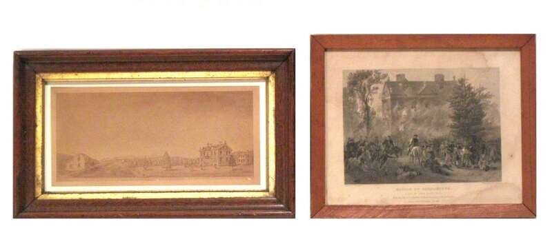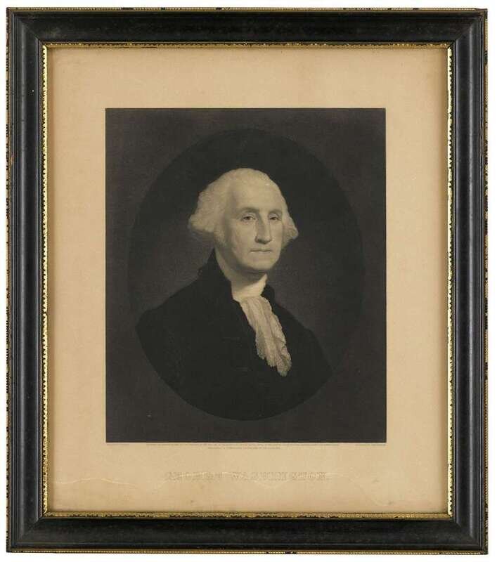 Including "George Washington" and "Martha Washington" by Sartain, the "Battle of Germantown Attack on Judd Chew's House," by Hinshelwood, a Classical view, after Nicolaus Poussin, printed Rome 1814 , together with an albumen photo of "Sketch of Germantown Battleground 1777 Chew House;" all framed.