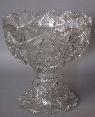Brilliant period cut-glass punch bowl and stand early 20th century