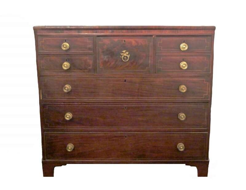 Classical mahogany inlaid bonnet chest mid 19th century