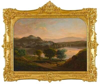 Attributed to Henry Ary (1807-1859) autumn twilight ,mount merino and south bay, hudson, new york,