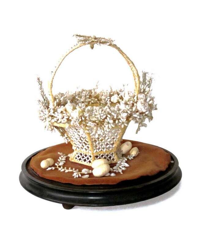 Bell jar with shellworked basket late half 19th century