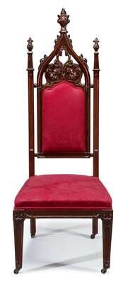 Carved Gothic revival hall chair circa 1845