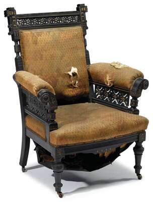 "Modern Gothic" ebonized and incised arm chair philadelphia, circa 1875