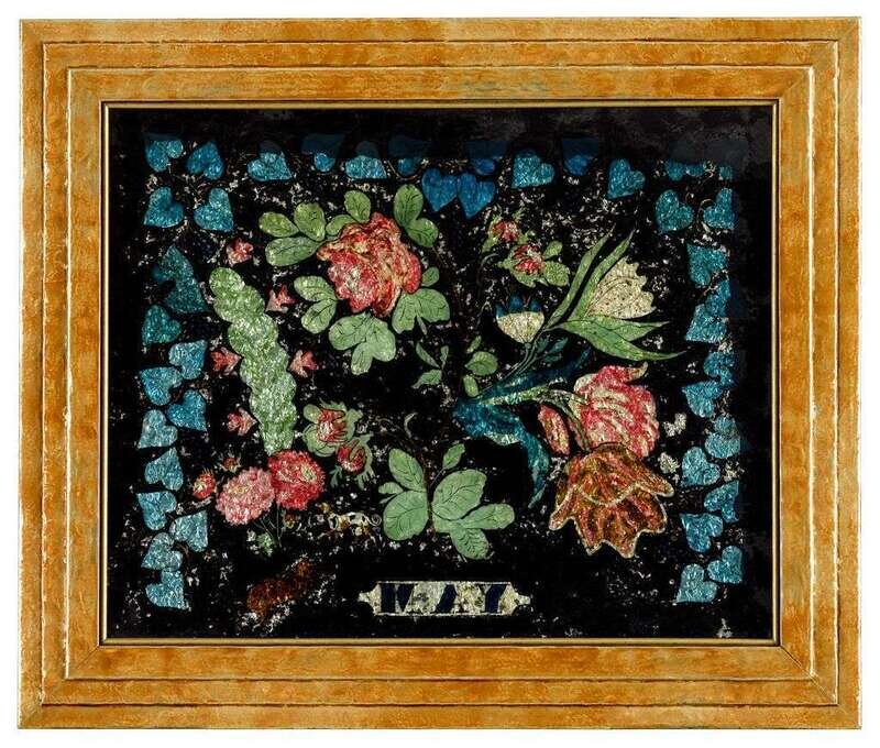 Group of four reverse-painted tinsel pictures 19th/20th century