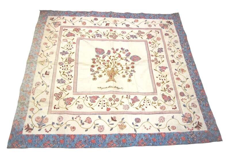 Embroidered and appliqued quilt signed, "margaret m. allisher ballygawley, " ireland, late 19th century