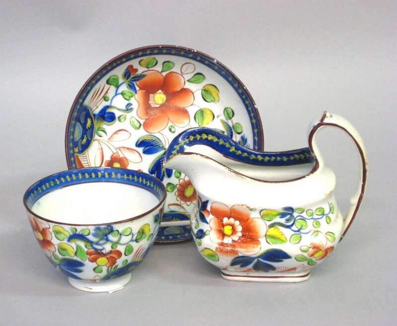 Staffordshire Gaudy Dutch "Single Rose" pattern tablewares early 19th century
