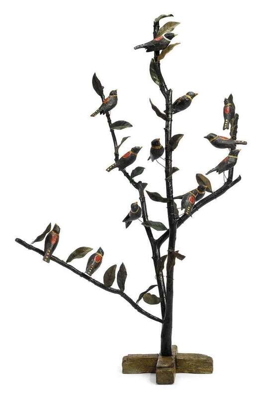 Carved and painted bird tree early 20th century