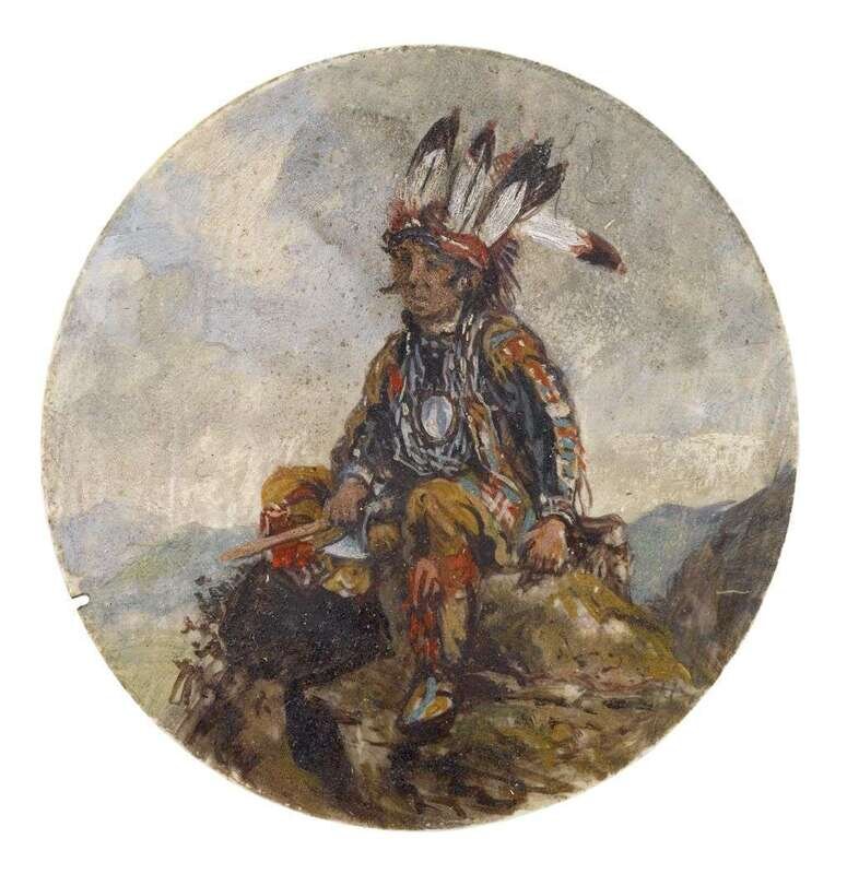American School 19th century miniature painting of an indian