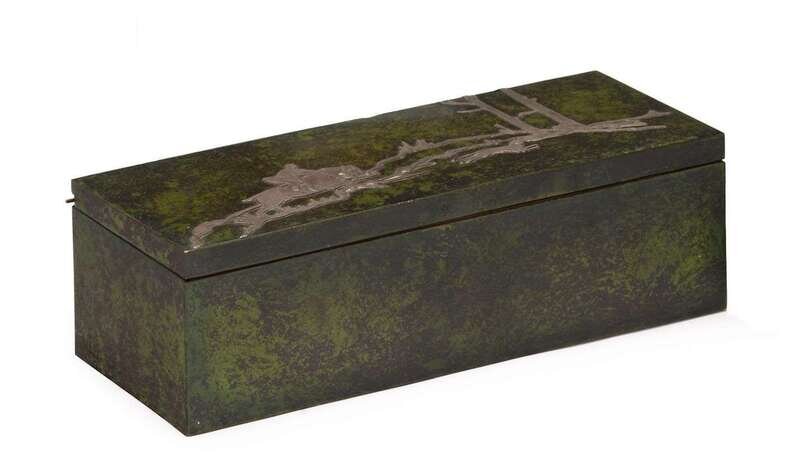Sterling on bronze cigarette box heintz art metal shop, buffalo, new york, circa 1920