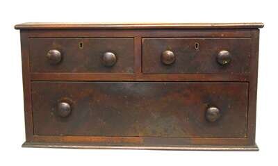 The rectangular case fitted with three veneered drawers, turned knobs.