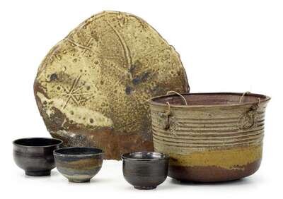 Five pieces of glazed earthenware. attributed to toshiko takaezu, b.1929