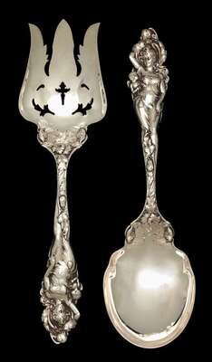 Sterling silver Art Nouveau cast and finished salad set reed & barton, circa 1900