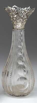 Cut glass vase with flaring sterling silver collar brilliant period, circa 1900