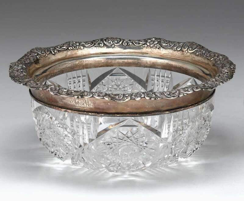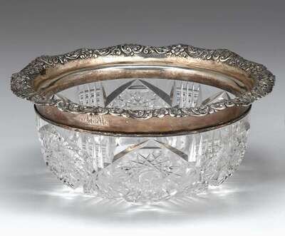 Cut glass fruit bowl with sterling silver rim hamilton and diesinger, retailer, circa 1897