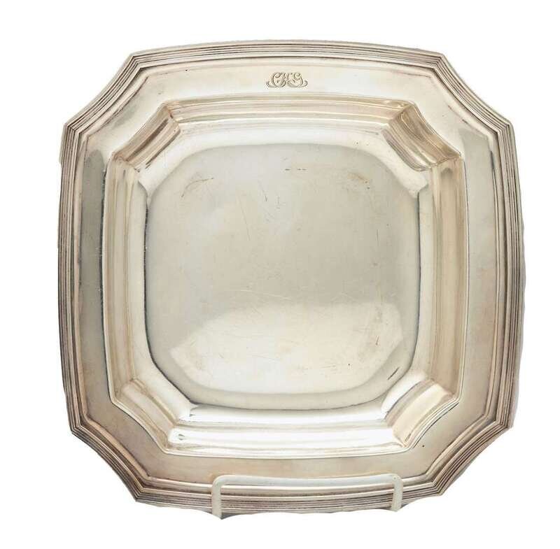Weight: 38.8 troy oz.. Diam: 12 in. (cake plate); L: 9 in. (vegetable dish)