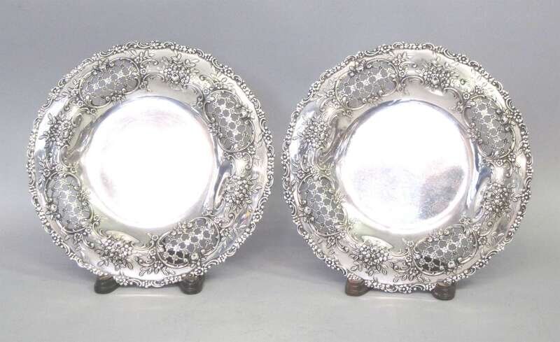 Of circular form with an everted floral repousse and open work rim and "C" scroll and floral decorated edge.