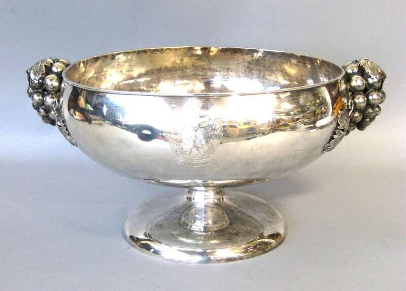 Mexican sterling silver twin handled footed punch bowl sanborns, 20th century