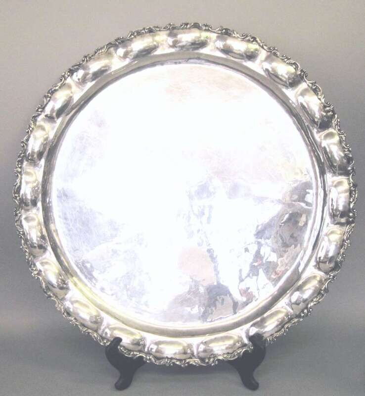 Large silver circular tray probably mexican