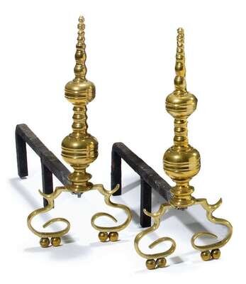 Pair of brass andirons late 19th century