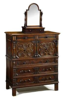 William and Mary style chest of drawers and dressing mirror kittinger, buffalo, ny, 20th century