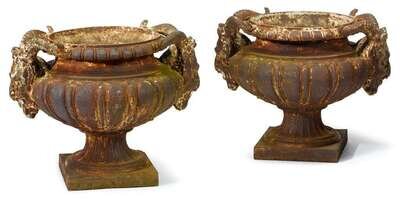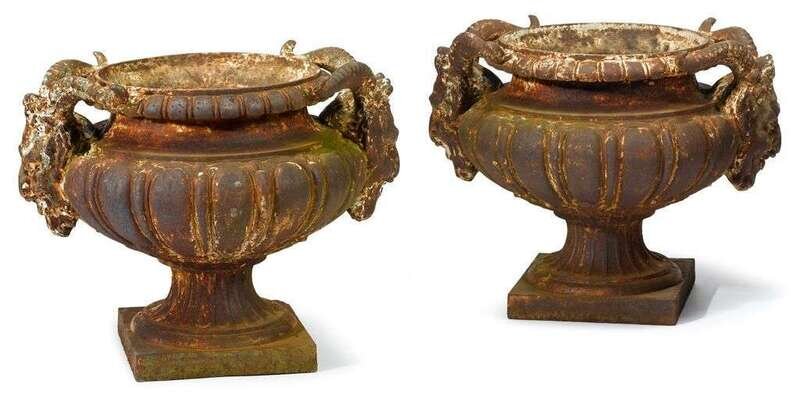 Pair cast-metal of urns