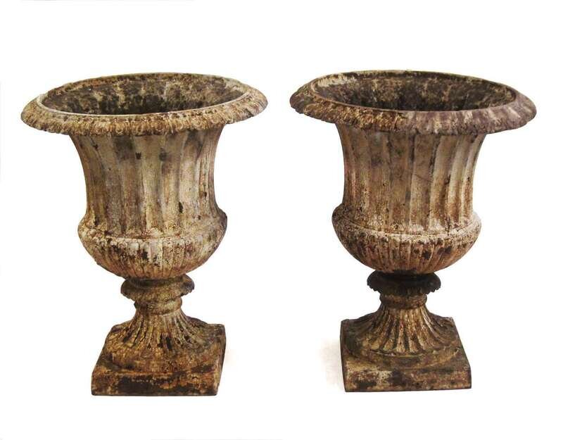 Pair of white painted Campana form cast-metal urns