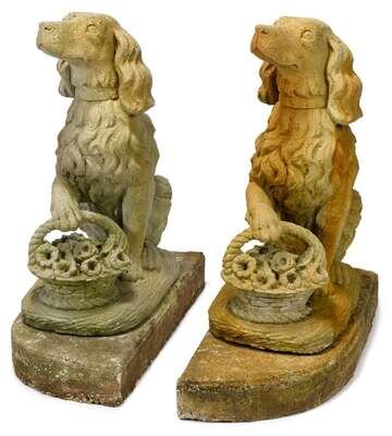 Pair of cast stone dogs