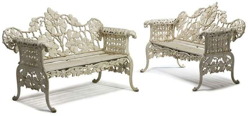 Pair of Victorian style white painted iron benches 20th century