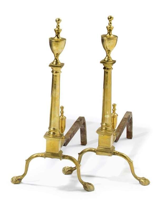 Pair of Colonial Revival brass andirons early 20th century