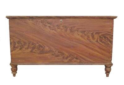 The rectangular molded lid on conforming case raised on turned feet, painted to imitate rosewood.