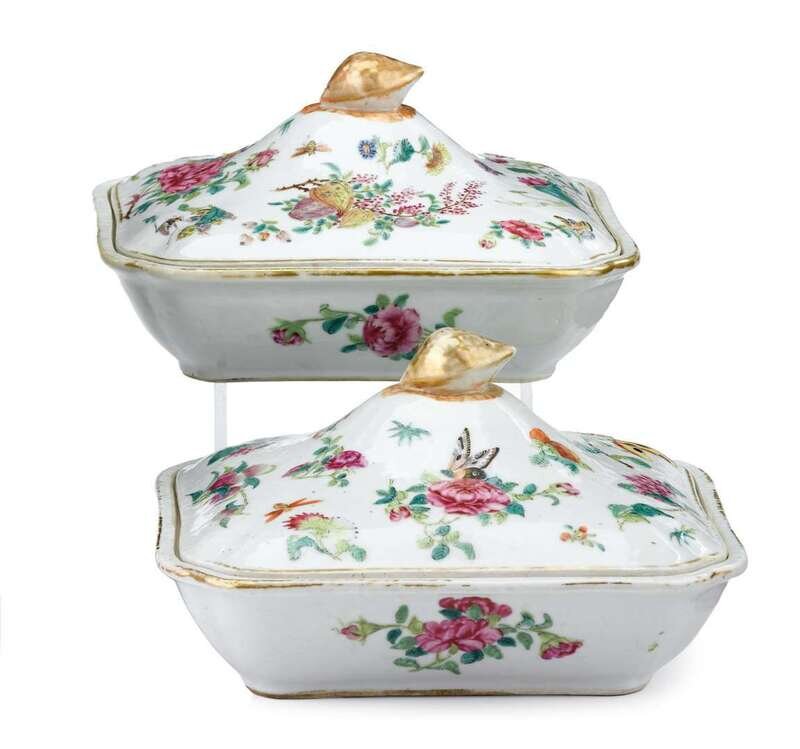 Pair of Chinese export porcelain covered serving dishes early 19th century