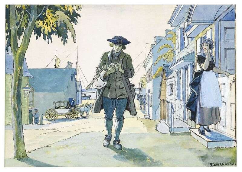 Edward Penfield (1866-1925), franklin arriving in philadelphia