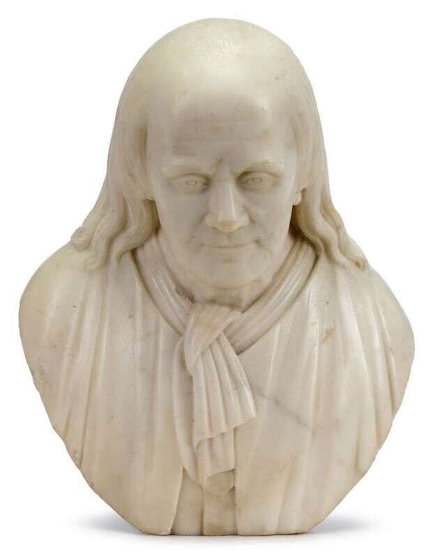 Carved marble bust of Benjamin Franklin american, early 19th century
