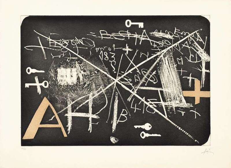 1974, pencil signed and numbered 56/75 (there were also 10 hors-commerce copies), with full margins; Ediciones Polígrafa, S.A. Barcelona, Spain, publisher. Color etching with embossing on Guarro.