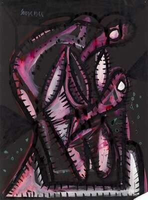 Signed and dated 1996 upper left and inscribed with estate number CR-GIP-66-007 and IP-66-026 in pencil verso, gouache and ink on black paper