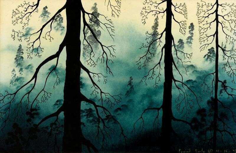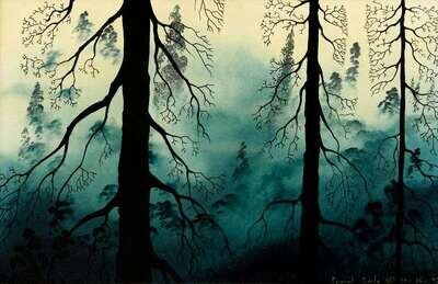 EYVIND EARLE (AMERICAN 1916–2000) "FUR [SIC] TREES AND FOG"