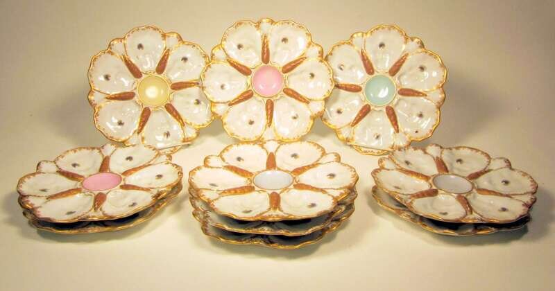 Ten Victorian molded porcelain oyster plates